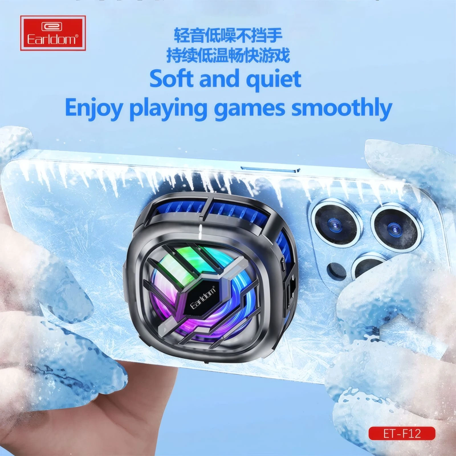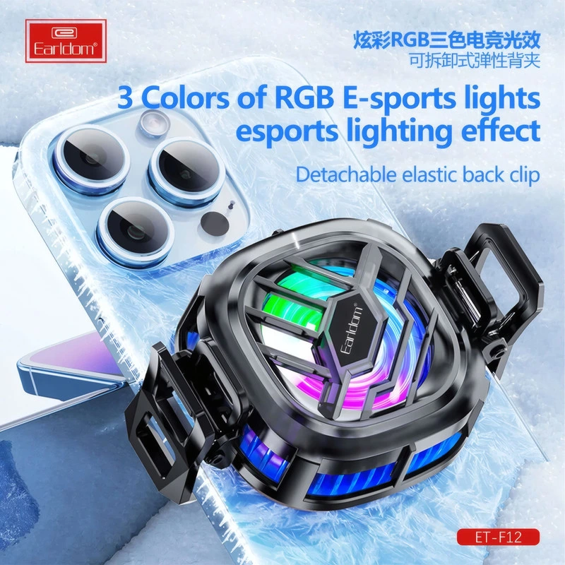 فن خنک‌کننده گوشی Earldom F12 با نور RGB و عملکرد قدرتمند، از داغ شدن گوشی هنگام بازی جلوگیری می‌کند. خرید با ضمانت اصالت و ارسال سریع از تی موبایل.