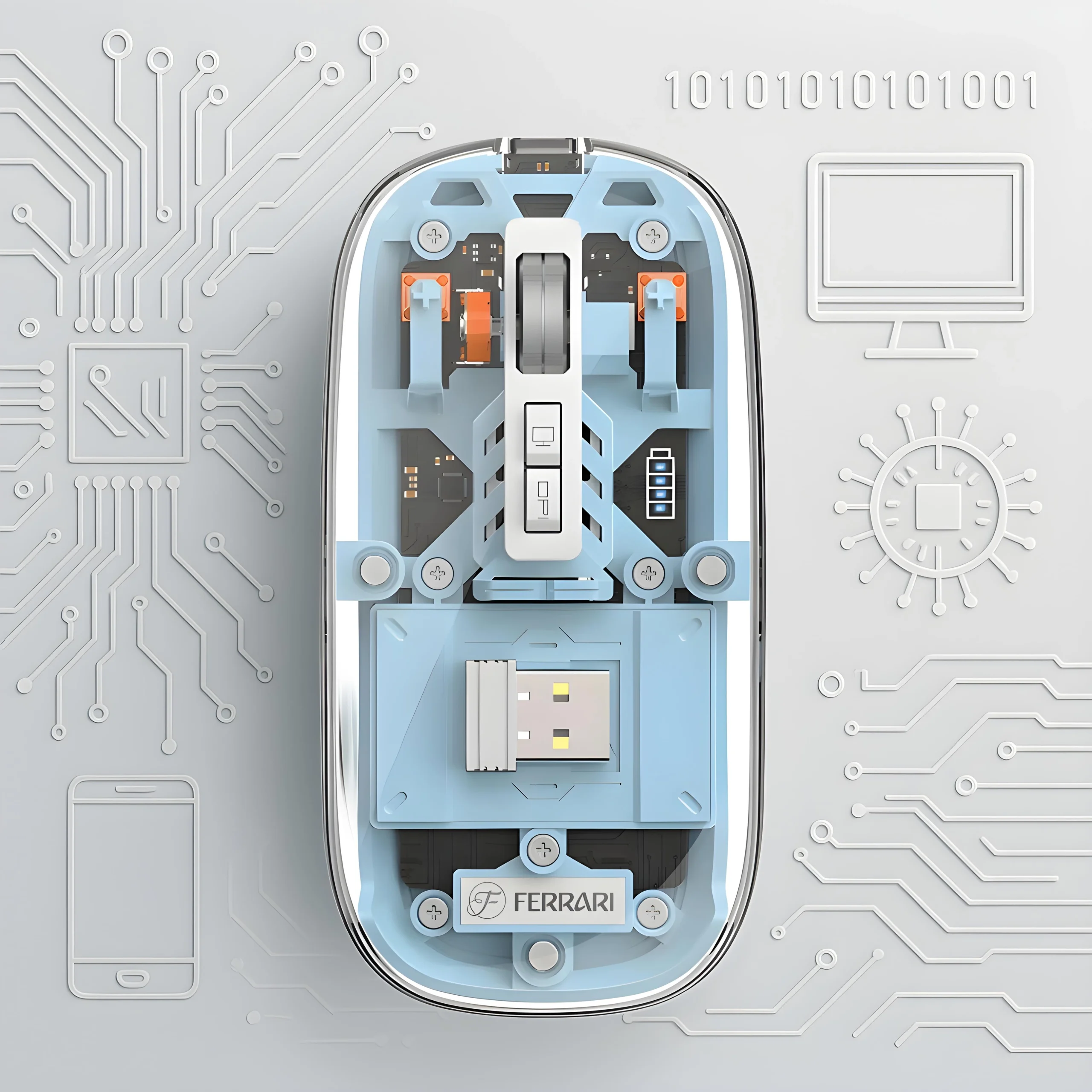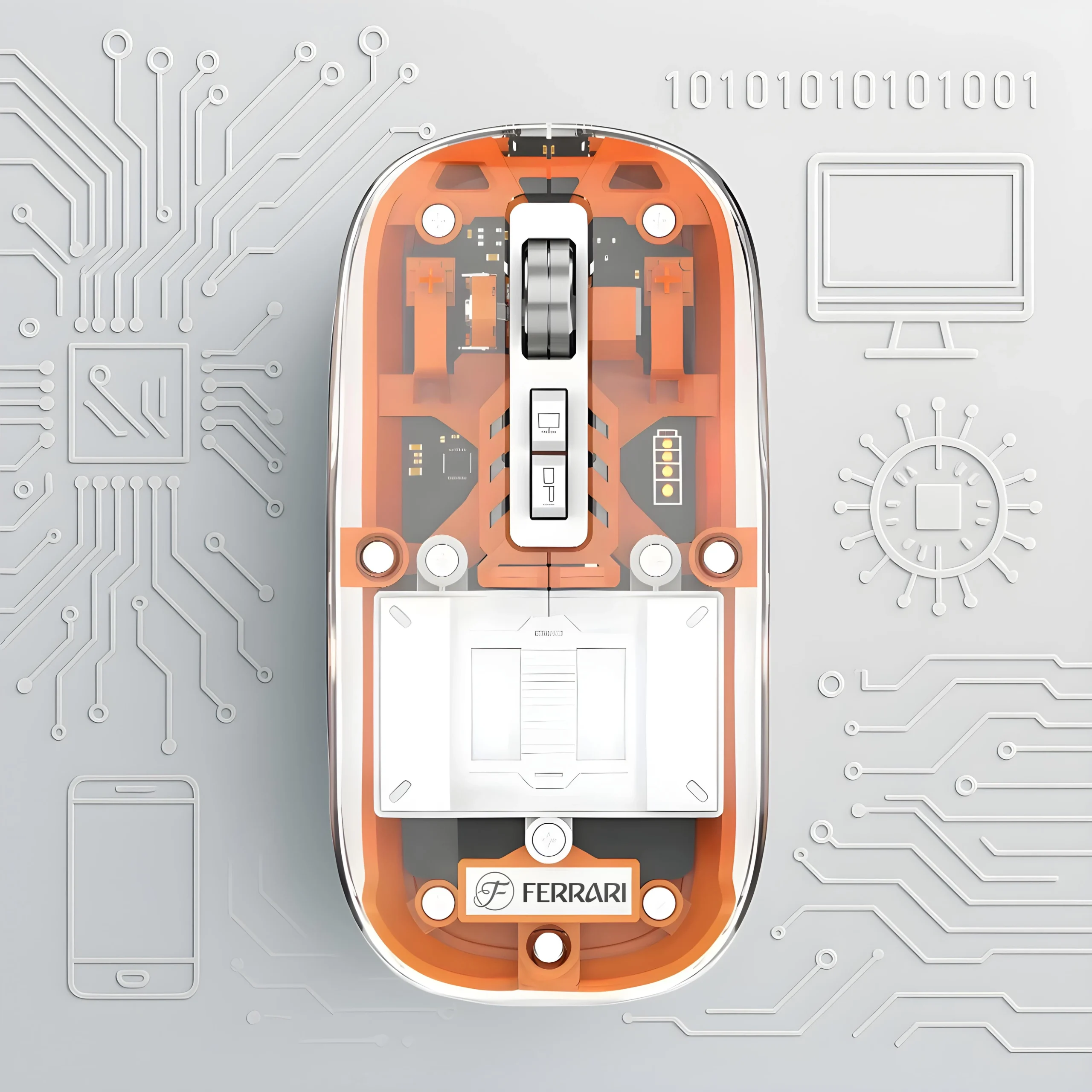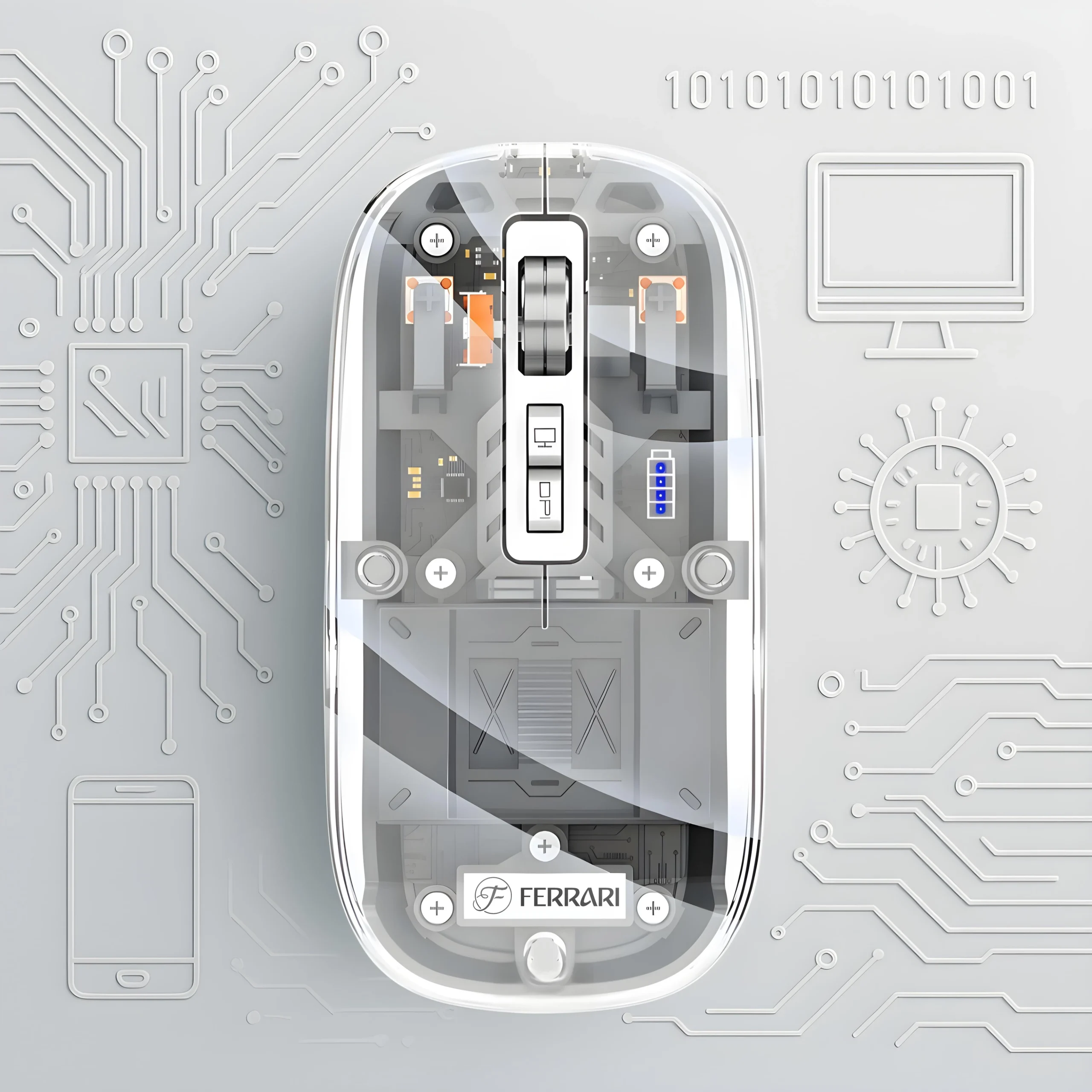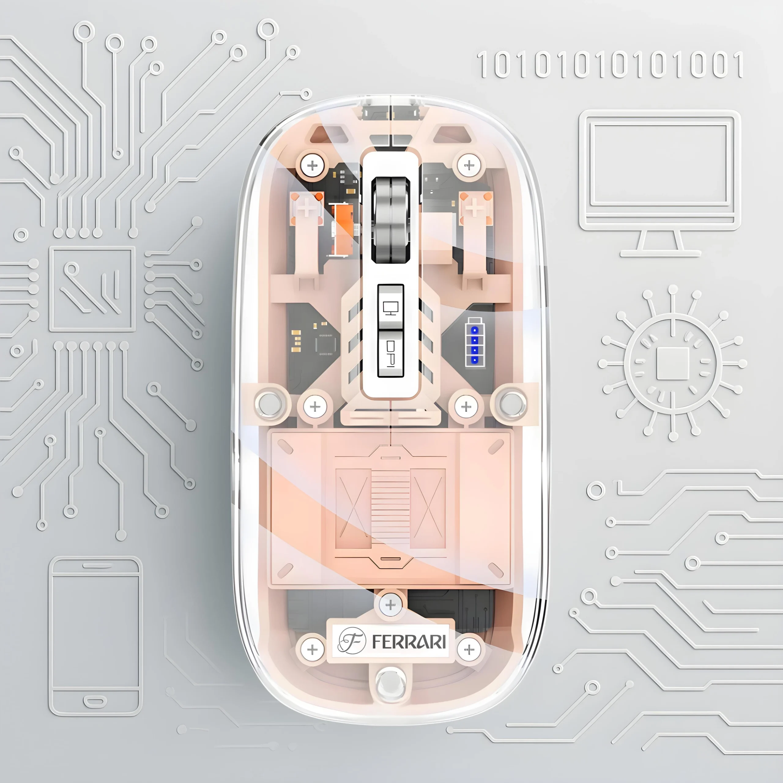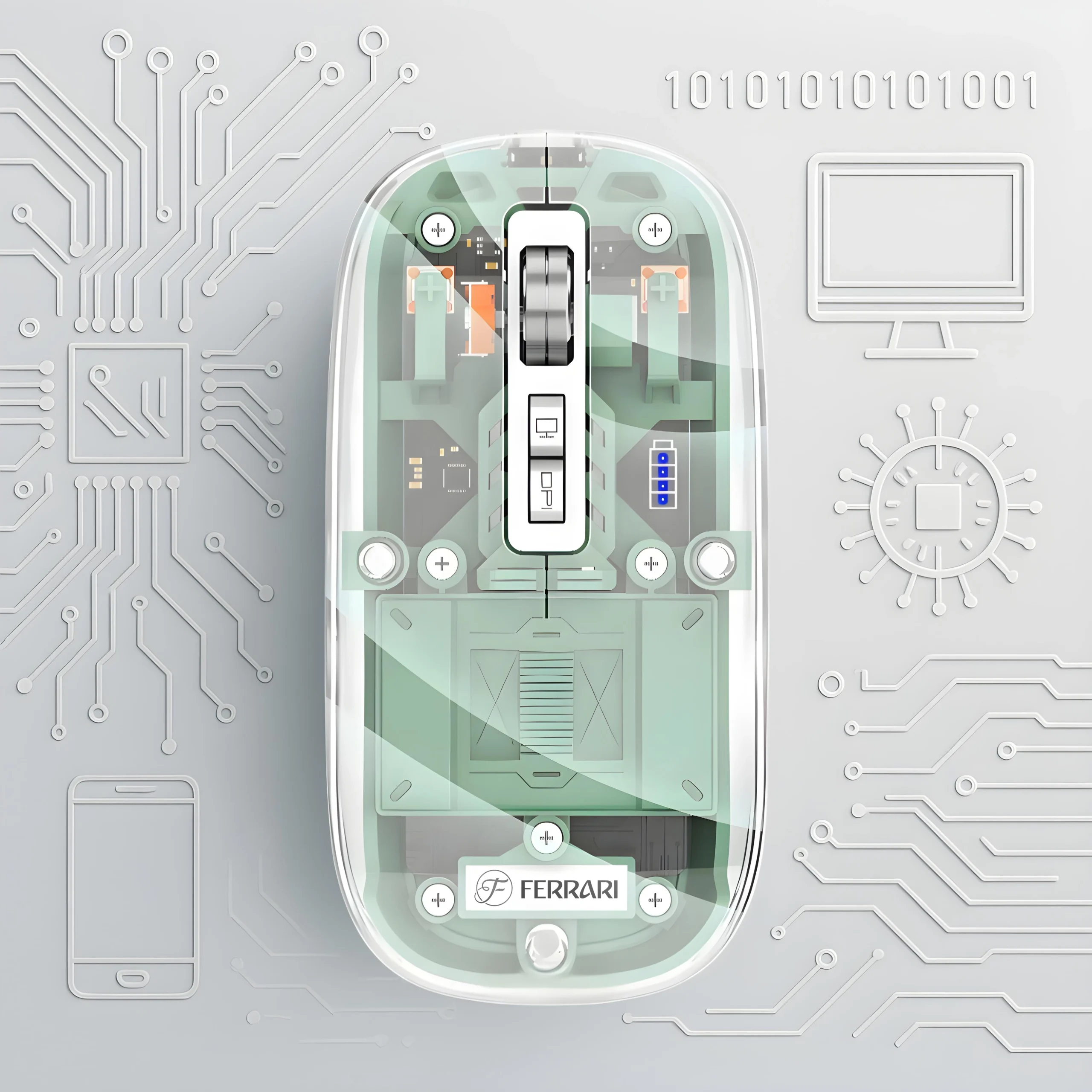 موس بی سیم فراری transparent ferarri mouse f8 ترکیبی از طراحی مدرن، کیفیت بالا و کارایی حرفه‌ای است که تجربه‌ای متفاوت از استفاده از موس را برای شما به ارمغان می‌آورد. بدنه شفاف و خاص این موس الهام‌گرفته از سبک لوکس خودروهای Ferrari طراحی شده و جلوه‌ای بسیار زیبا و منحصر‌به‌فرد به میز کار یا فضای شخصی شما می‌بخشد.